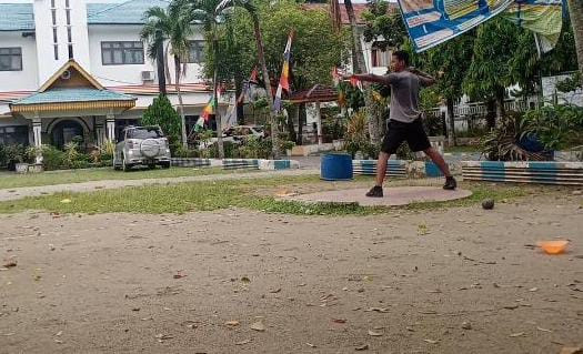 Juanda saat berlatih tolak peluru