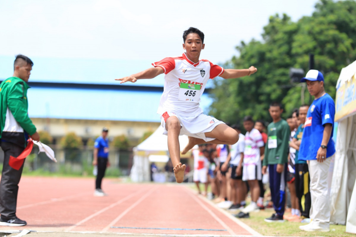 Reynaldy Simangunsong saat bersaing dalam nomor lompat jauh Energen Champion SAC Indonesia 2023 Sumatera Qualifiers