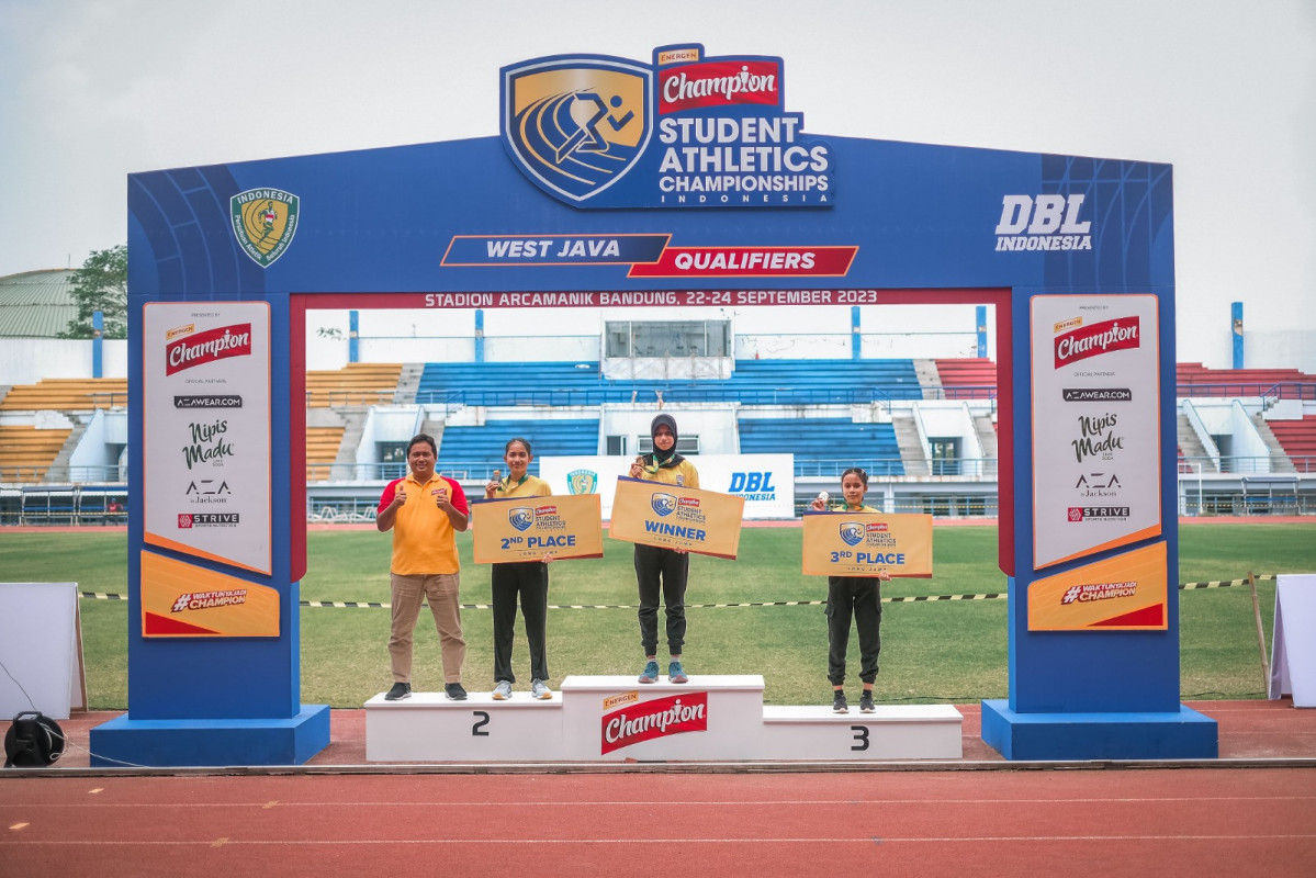 Rashylla Ananova L. begitu senang. Siswi SMAN 2 Bekasi itu mengunci kemenangan di lompat jauh putri Energen Champion SAC Indonesia 2023 West Java Qualifiers. Rashylla berhasil menghuni podium pertama dengan catatan jarak lompatan sejauh 4,41 meter. Rupanya, bukan hanya juara dan catatan bagus saja, yang membuat Rashylla senang.