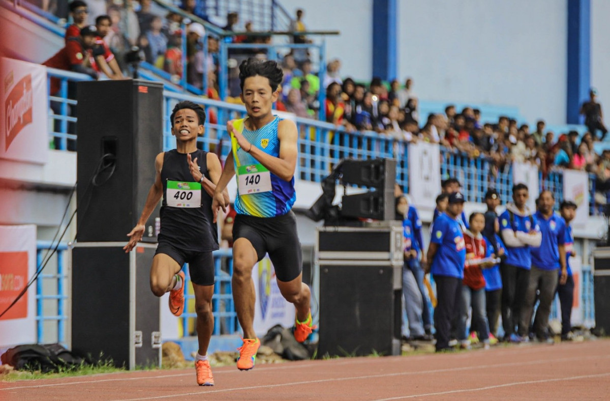Rafi Septian Rosad, saat bersaing dalam babak final 100 meter putra, Energen Champion SAC Indonesia 2023 West Java Qualifiers