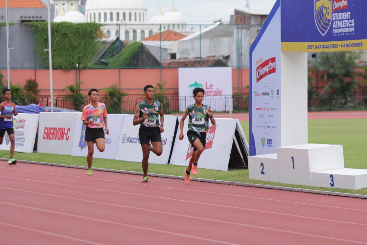 Persaingan middle distance 1.000m putra dalam Energen Champion SAC Indonesia 2023 East Java Qualifiers