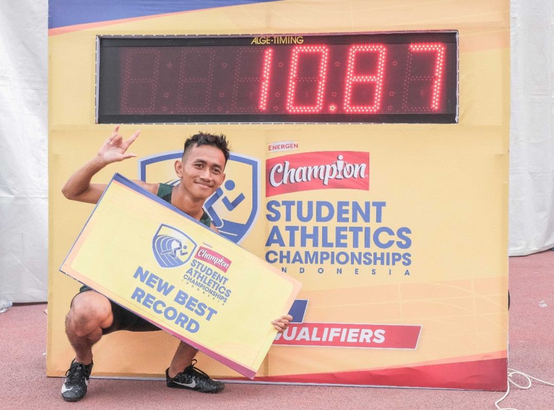 Sebelumnya, rekor SAC Indonesia di nomor 100 meter putra dipegang oleh Yogi Saputra (SMAN 1 Surade), dengan catatan waktu 11,06 detik. Yogi merupakan juara National Championship 2022 dan salah satu peserta SAC ke Australia. Sebagai informasi, rekor Indonesia untuk 100 meter putra saat ini masih 10,17 detik. Yang dicatatkan oleh Suryo Agung Wibowo di SEA Games 2009.