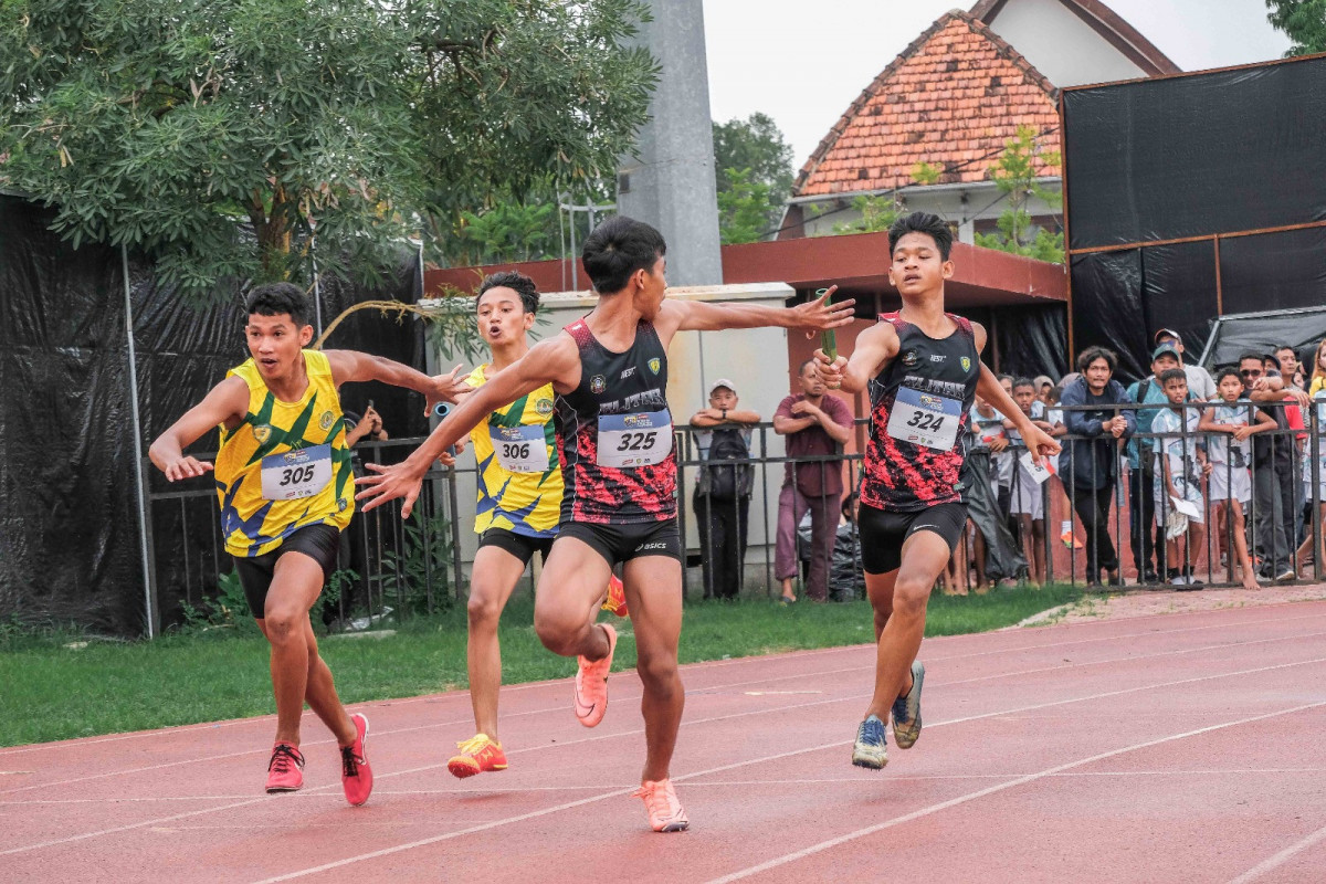 Aksi MTSN 1 Kota Blitar di babak final relays 5x80 meter putra Energen Champion SAC Indonesia 2023 East Java Qualifiers