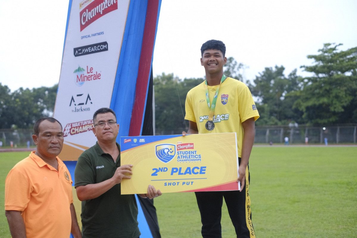 Marcel Lianses Ketaren saat menerima UPP sebagai peraih 2nd Place tolak peluru di Energen Champion SAC Indonesia 2023 Sumatera Qualifiers