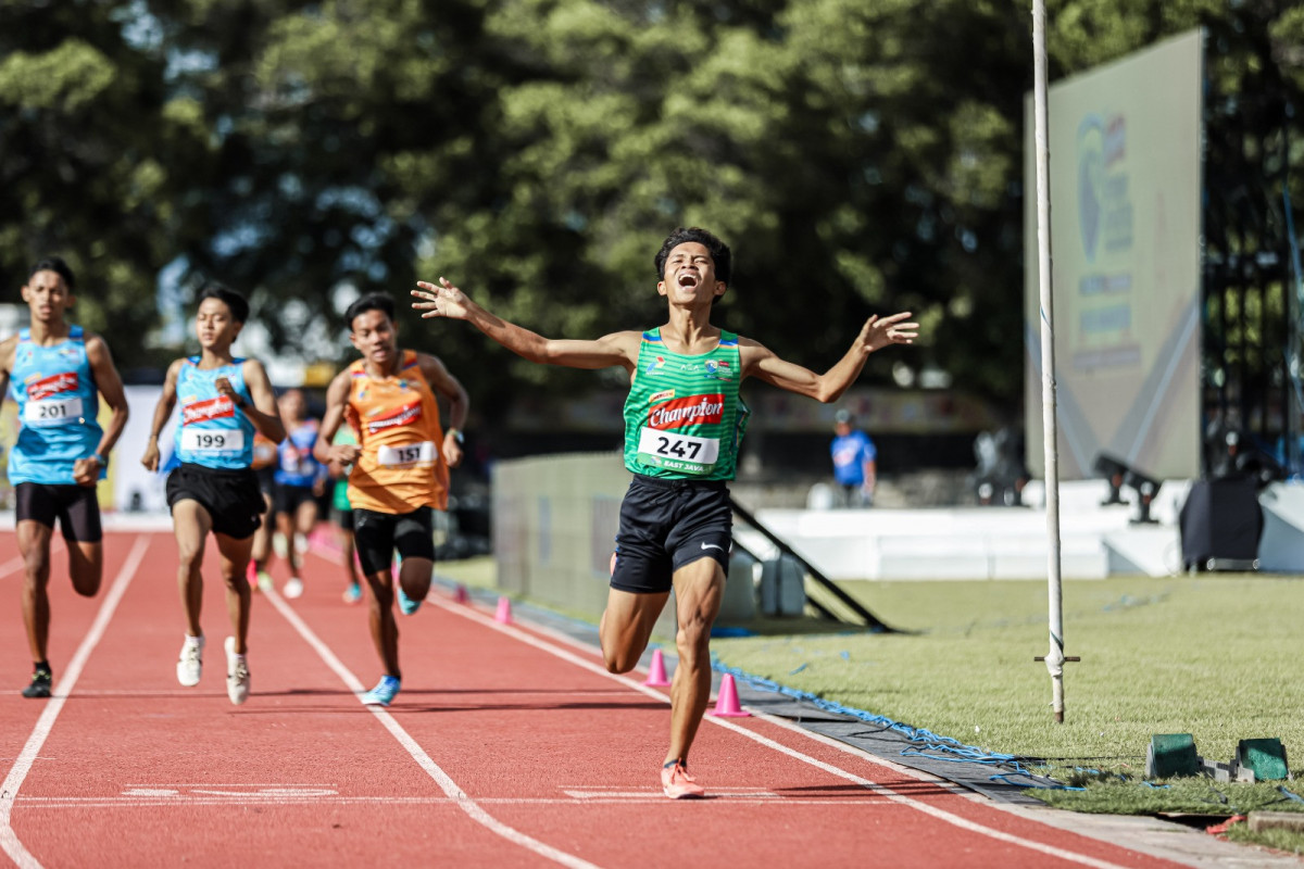 Istimewa. Mi'Rojul Ridwan, siswa asal MAN 5 Bojonegoro berhasil menjadi pelari tercepat pada nomor lomba middle distance 1.000 meter Energen Champion SAC Indonesia 2023 National Championship. Ia berhasil menyelesaikan perlombaan dengan catatan waktu 2 menit 39,53 detik.