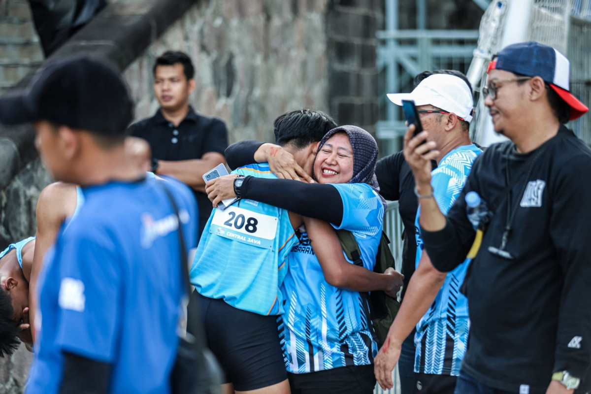 Momen haru Sindu saat dihibur oleh teman seperjuangannya berhasil tertangkap kamera.