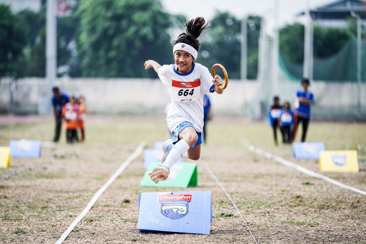 3. Nantinya, di tengah lintasan lari akan diberi gawang plastik yang berfungsi sebagai penghalang. Sehingga anak-anak harus melompat jika ingin melewatinya. Setiap lompatan antara satu penghalang ke penghalang lain memiliki jarak yang sama.