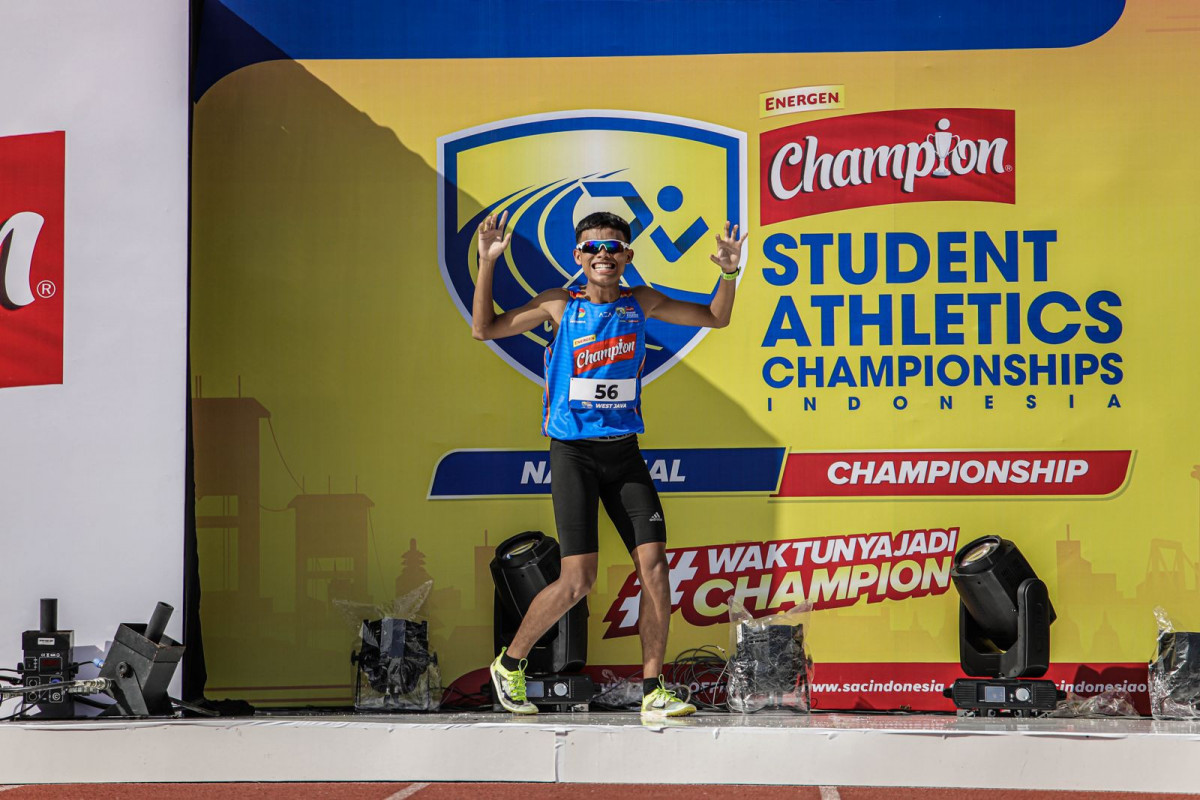 Taffarel Juan Chrissanto dari SMAN 2 Kota Tangsel punya salah satu aksi roll call terbaik selama penyelenggaraan National Championchip 2023. Juara middle distance 1.000m putra di Jakarta Banten Qualifiers tersebut mencuri perhatian dengan gaya kerennya.