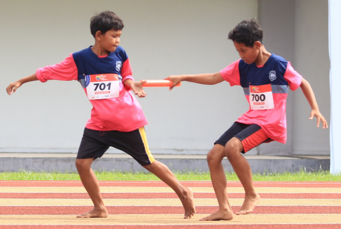 Persaingan sengit terjadi di babak final lari Estafet nomor 8x50 meter pada Energen Champion SAC Indonesia 2022 Yogyakarta Qualifiers yang berlangsung di Stadion Mandala Krida, Minggu (23/10) sore. Para peserta dari SD wilayah Kota Yogyakarta mendominasi di sektor putra maupun putri.