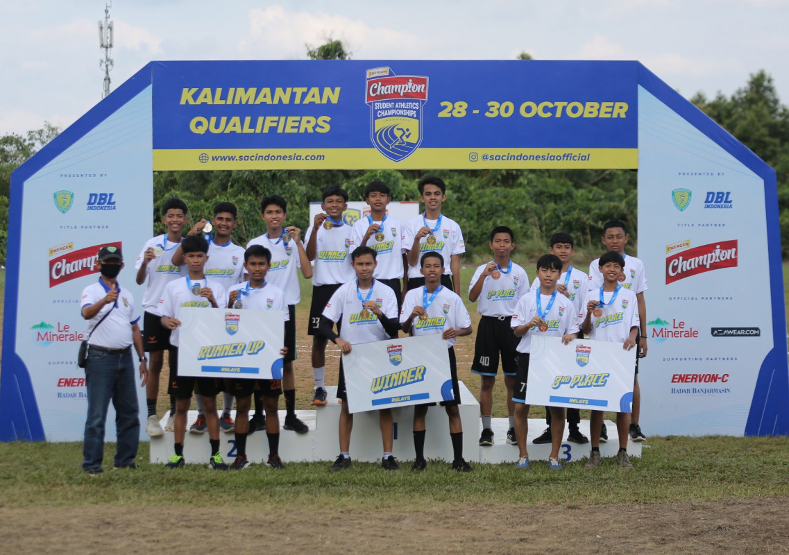 SMPN 1 Banjarbaru menutup Energen Champion Student Athletics Championships (SAC) Indonesia - Kalimantan Qualifiers dengan full senyum. Sebab, mereka berhasil mengawinkan podium juara di nomor estafet 5x80 meter putra dan putri pada Minggu (30/10) sore.