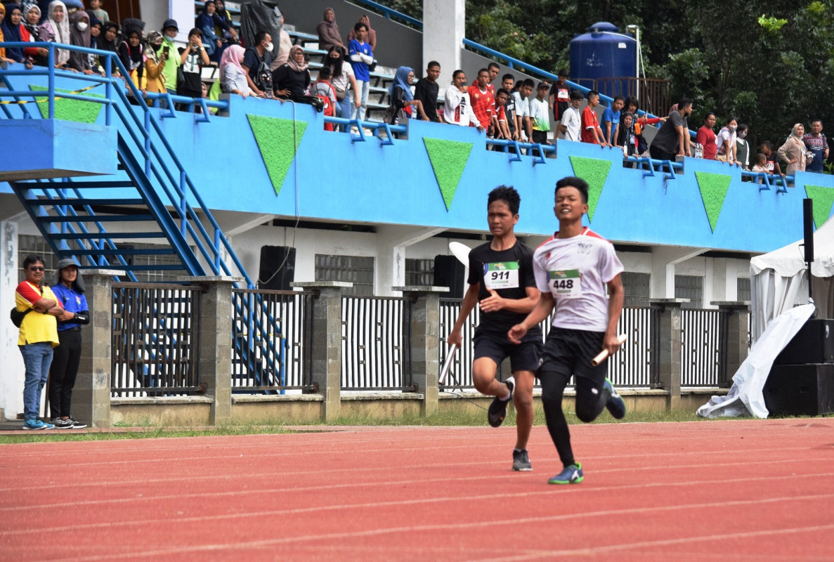 Estafet menjadi salah satu nomor yang paling ditunggu oleh penonton yang hadir di Stadion Unimed