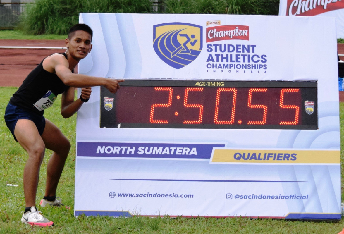 Rikki Sihombing berhasil mengantongi catatan waktu 2 menit 50,5 detik dalam lari 1.000 meter di North Sumatera Qualifiers