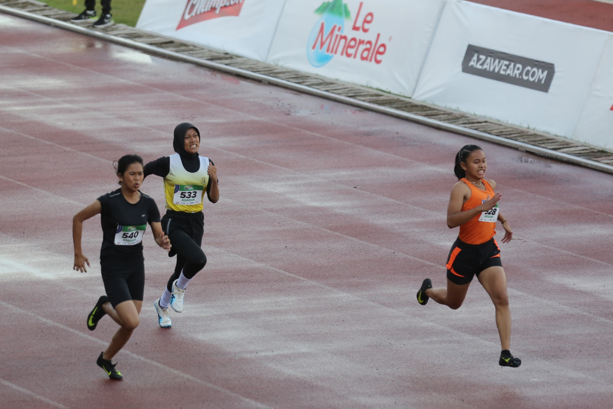 Sebanyak delapan finalis bakal berlomba menjadi yang tercepat di lintasan Stadion Atletik Rawamangun, Minggu (20/11). Mereka antara lain Calista Esther Emily dari SMA IGN Slamet Riyadi. Calista mengemas catatan tercepat pada penyisihan dengan 13,77 detik.