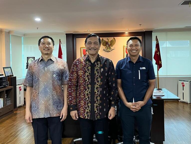 Ketum PB PASI Luhut Binsar Pandjaitan diapit CEO dan Founder DBL Indonesia Azrul Ananda (kanan) dan CEO Mayora Group Andre Atmadja (kiri).