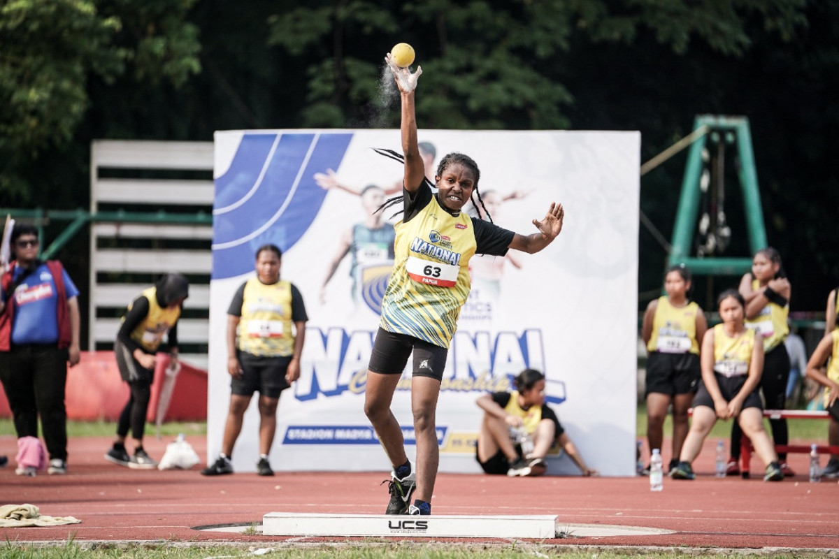 Champion SAC, Bayanillah, saat mencoba lempar lembing di SAC Indonesia
