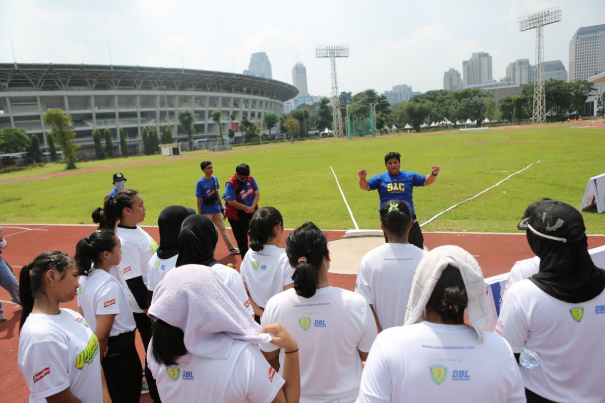 Para peserta Energen Champion SAC National Championship mengikuti coaching clinic di Stadion Madya, Jakarta
