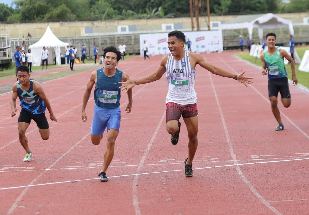 M. Fahril Wardanang berjaya di Energen Champion Student Athletics Championships (SAC) Indonesia Bali-Nusra Qualifier, Minggu (2/10) sore. Siswa SMAN 1 Woja itu menjadi yang tercepat dalam nomor lari 100 meter putra.