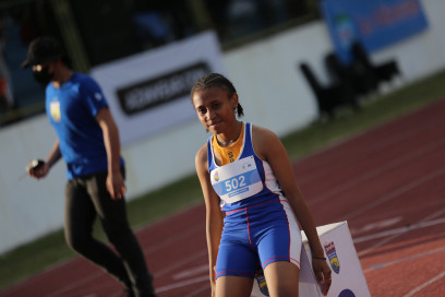 Salah satu anggota tim estafet 4x100 meter putri dari SMAN 1 Mimika, Riyen May Patana, siap berprestasi jika Student Athletics Championships (SAC) ada lagi...