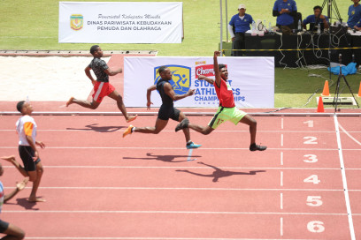 Final nomor lari estafet 8x50 meter digelar di Mimika Sports Complex (MSC). Hasilnya, tim putra SD YPPK Waonaripi dan tim putri SD Pomako menjadi yang terbaik