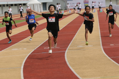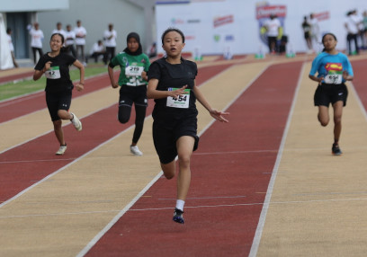 Thalita Nur Afiqoh keluar sebagai pemenang sprint 80 meter putri di Energen Champion SAC Indonesia Yogyakarta Qualifiers.