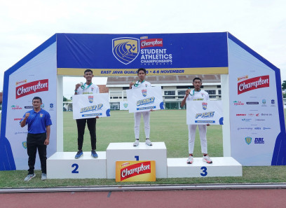 Delegasi MAN 5 Bojonegoro, Mirojul Ridwan menjadi kampiun lari 1.000 meter Energen Champion SAC Indonesia - East Java Qualifiers.