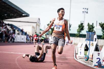 SMPN 8 Jakarta menjadi pemenang nomor estafet putra di Energen Champion SAC Indonesia - Jakarta-Banten Qualifiers