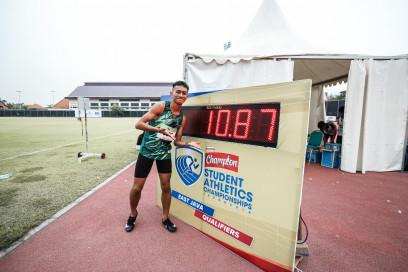 Atika Carmelia Nasmah menjadi yang tercepat di nomor sprint 80 meter Energen Champion SAC Indonesia 2023 East Java Qualifiers dengan catatan 10,812 detik.